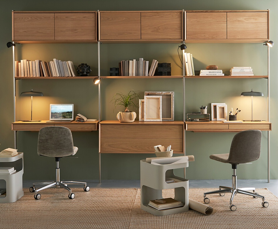 En partie basse (jusqu’à environ 70–100 cm du sol), je privilégie les tiroirs, beaucoup plus pratiques que les placards. À hauteur du buste et de la tête, les rangements ouverts ou semi-ouverts sont souvent les plus confortables et permettent de mettre en valeur des objets décoratifs. Les placards fermés trouvent naturellement leur place en partie haute.