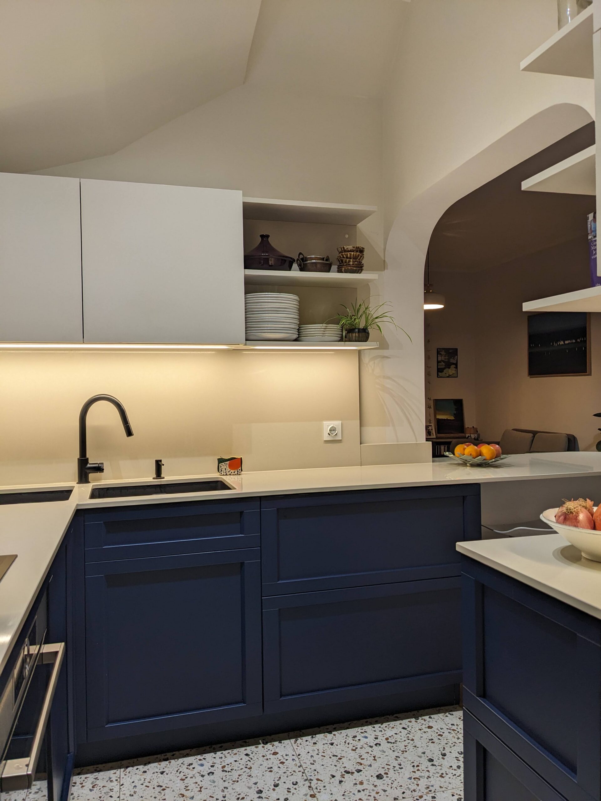 entrée Nogent avantMaison Nogent-sur-Marne Une entrée étroite sublimée par du bleu nuit et un meuble sur mesure